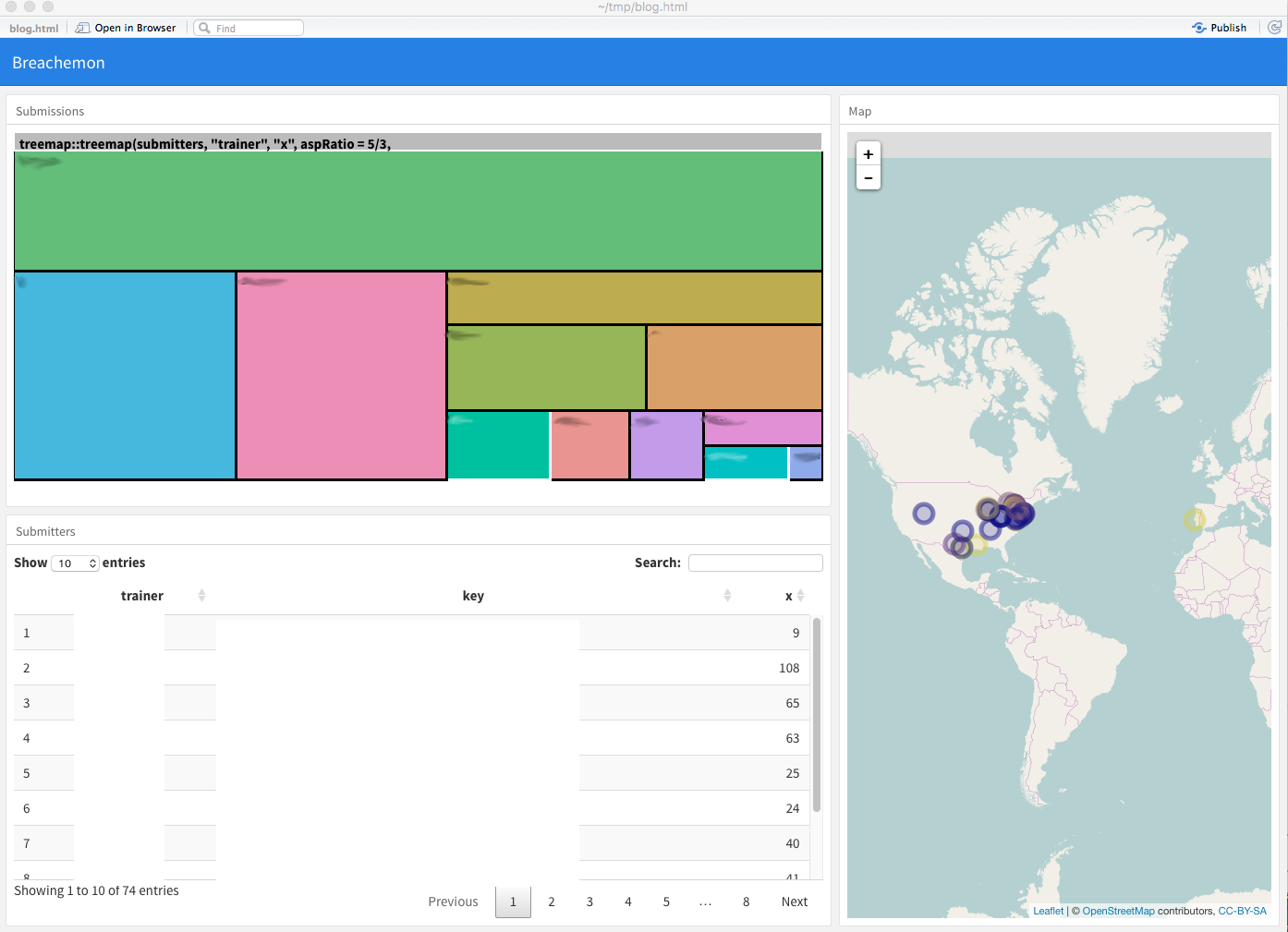 d3treeR::d3tree2(treemap::treemap(submitters, "trainer", "n", aspRatio=5/3, draw = FALSE)) # produce a treemap of submissions per person