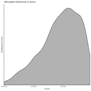 Finally we wanted to look at the distributions of potential final scores and the contributions from the individual scoring types