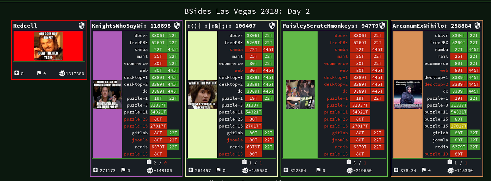 This year we added additional servers coming on and off line at various times as well as began the process of updating the gray team's role by allowing them to play a puzzle challenge hosted on the blue team servers.